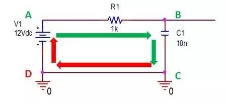 其隐含一个问题就是在PCB上其实V1的负极和C1的负极是有一条线(PCB layout工具软件中用的词比较准确,Trace,踪迹/轨迹)。